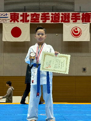 同時にシニア空手道選手権大会と子供型空手道選手権大会も開催され、子供型高学年の部で根本來空7級が3位入賞しました。